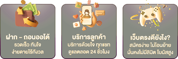 ตอบ : - มีระบบฝาก-ถอนอัตโนมัติรวดเร็ว รองรับทุกธนาคาร มีโปรโมชั่นแจกเครดิตฟรี และระบบความปลอดภัยมาตรฐานสากล